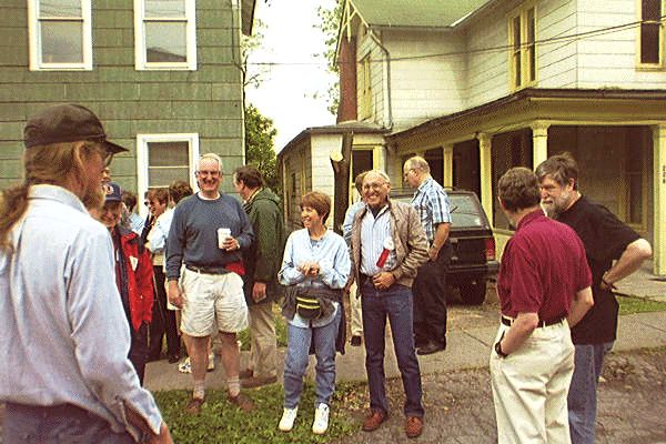 Left to right: John Hill, Roger Kaplan, Denny Paul, Bob Timmerman (green jacket), Donna Ernstoff, Mike Ernstoff, Chuck Moeder, Jeff Milman, and Frank Huband